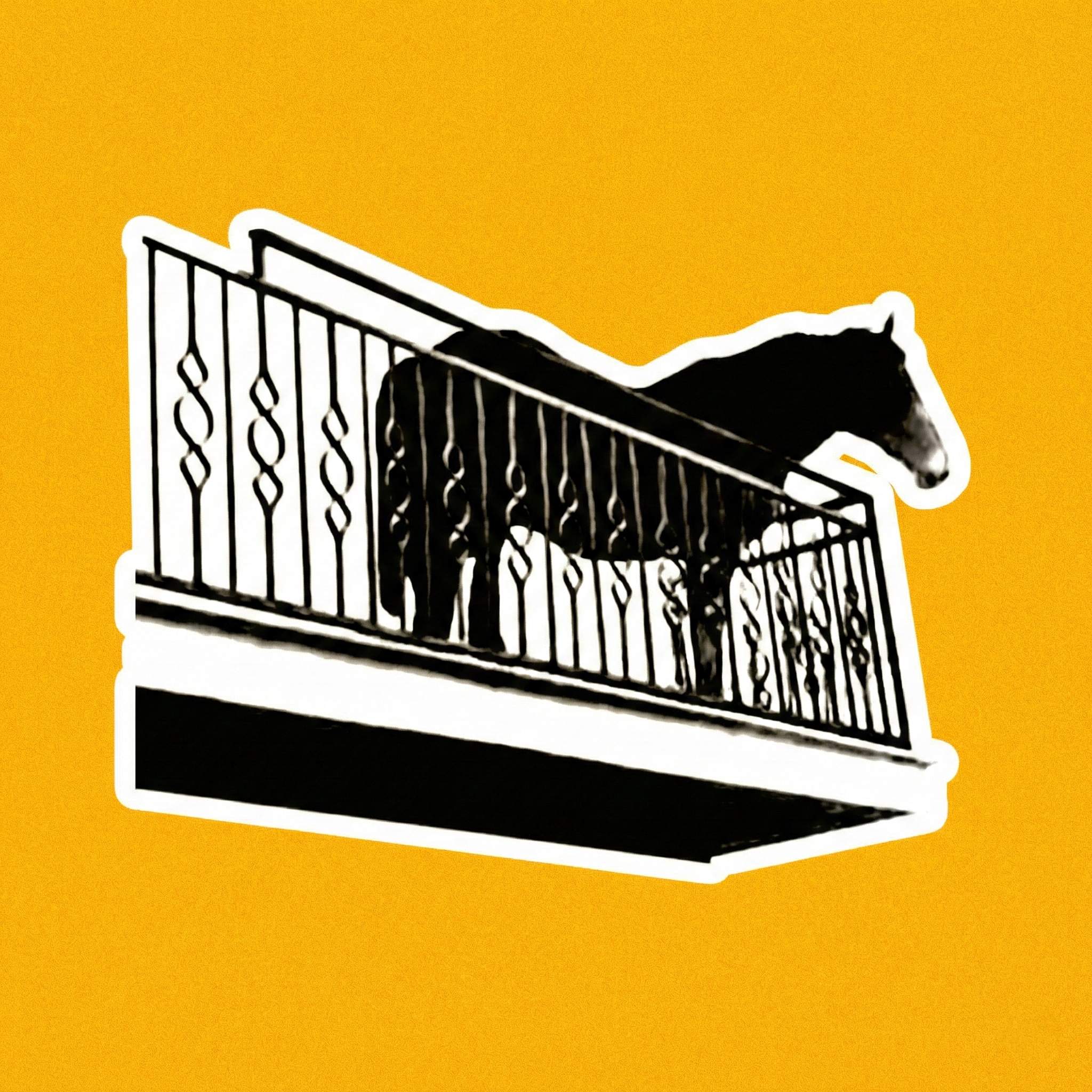 He is on the balcony.